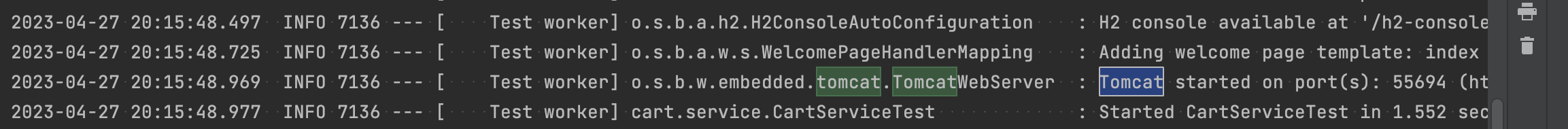 이로 인해 RANDOM_PORT 혹은 DEFINED_PORT를 지정하였을 때만 내장 톰캣이 켜지고 포트가 할당되는 것을 확인할 수 있다.