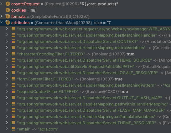 HttpServletRequest 객체는 요청 별로 하나가 생성되며 attribute를 저장 시 ConcurrentHashMap에 key - value 형태로 저장된다.