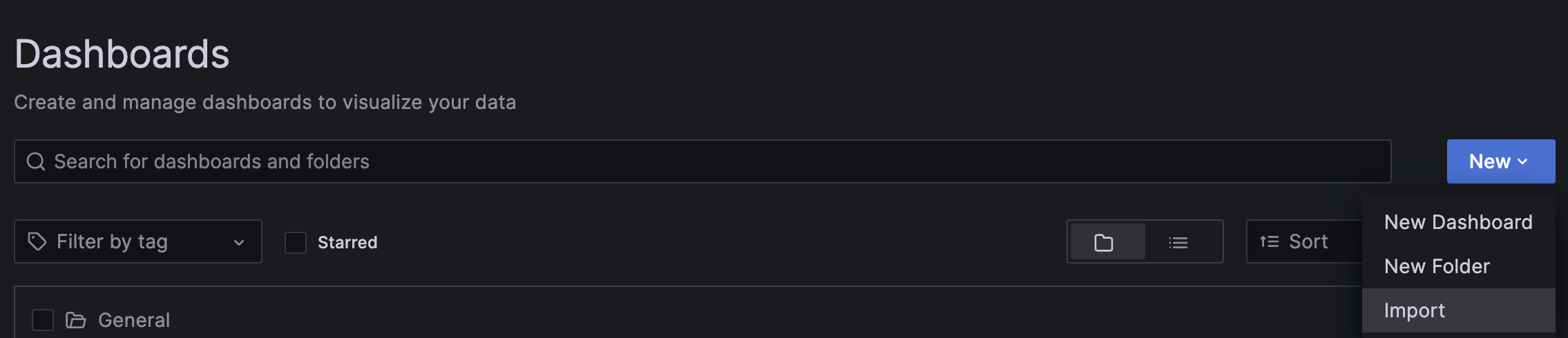 Dashboards > New > Import에서 사용할 대시보드의 ID를 적고 Load 하기만 하면 된다.