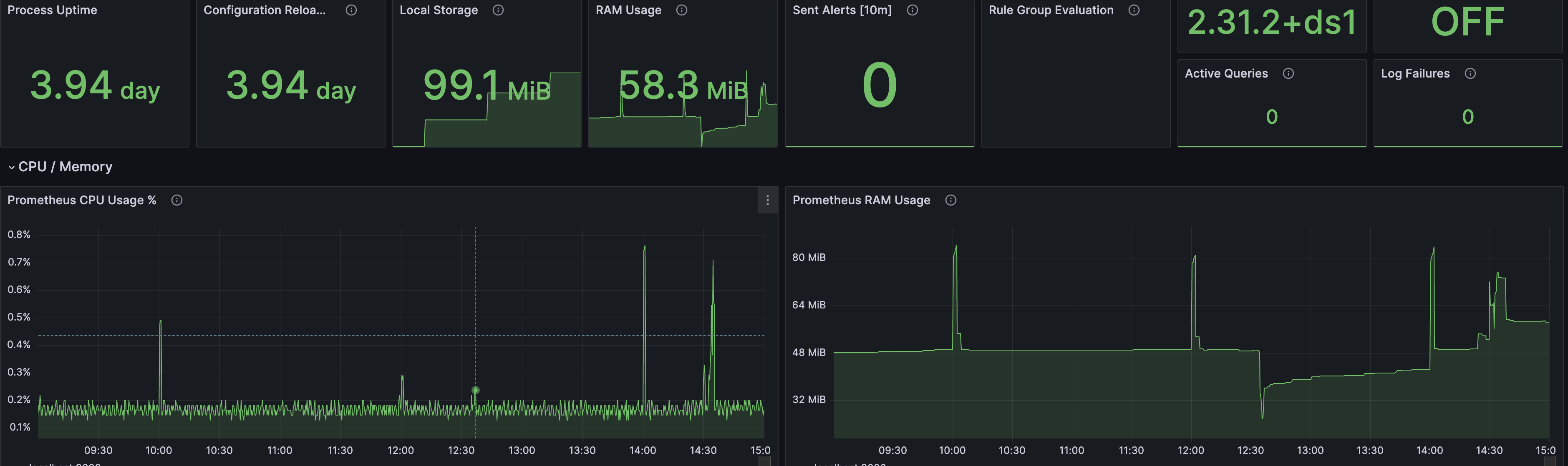 - Monitoring Server의 Prometheus 프로세스에 대한 Metric. 메모리 사용, 처리량, 쿼리 성능 등을 포함.