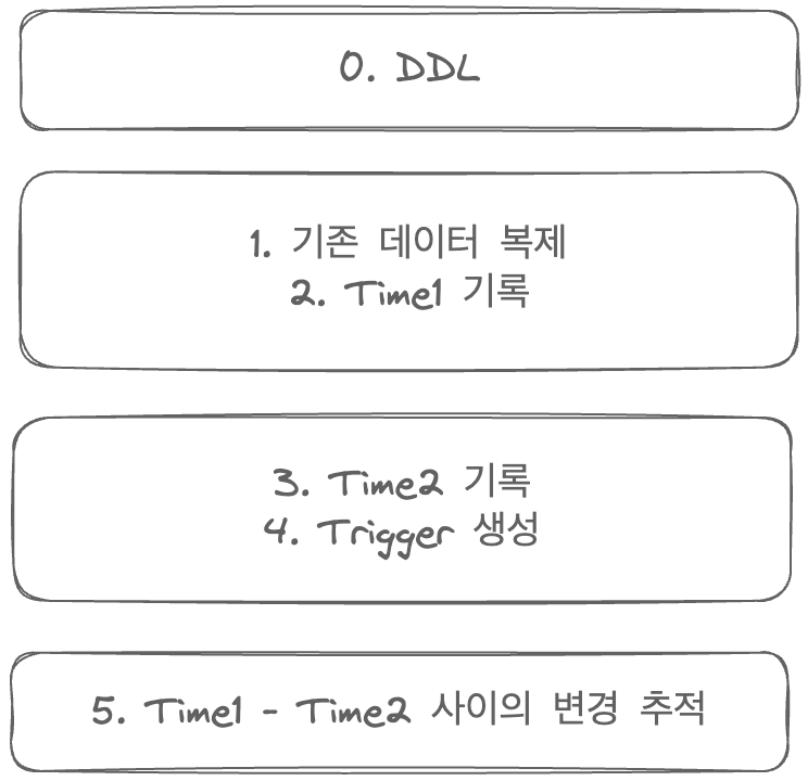 1. '기존 데이터 복제', 2. 'Trigger를 통한 신규 데이터 복제' 두 가지만 같은 시점에 명령하면 되었다.