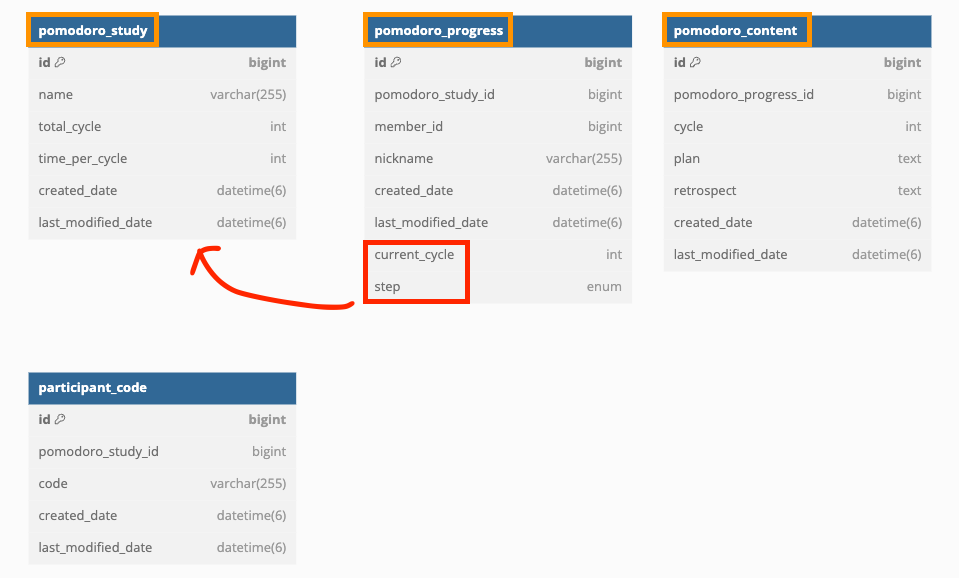 개인 별로 저장되던 스터디 참여자들의 진행 정보가 기획이 수정되며 함께 관리되도록 바뀌었다.